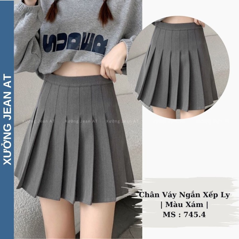 HƯỚNG DẪN MUA HÀNG : Chân Váy Ngắn Xếp Ly Màu Xám dáng Chữ A Xòe Phong Cách Tennis Trẻ Trung Năng Động 745.4