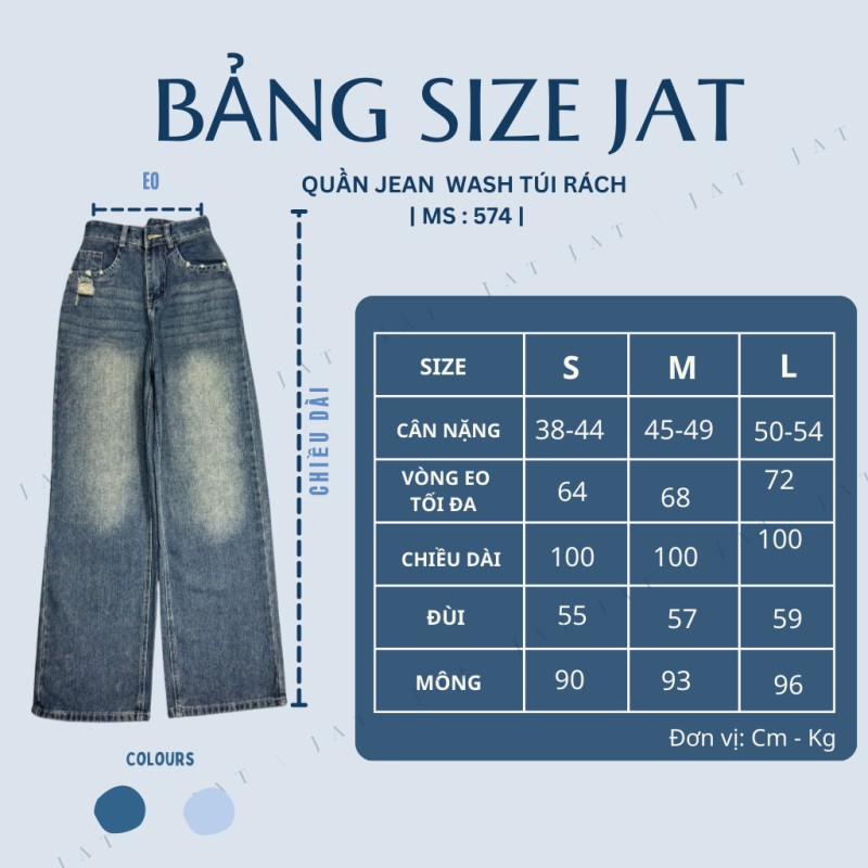 HƯỚNG DẪN MUA HÀNG : Quần Jean Nữ Ống Rộng Lưng Cao Wash Túi Rách Màu Xanh Đậm Phong Cách Basic 574.2